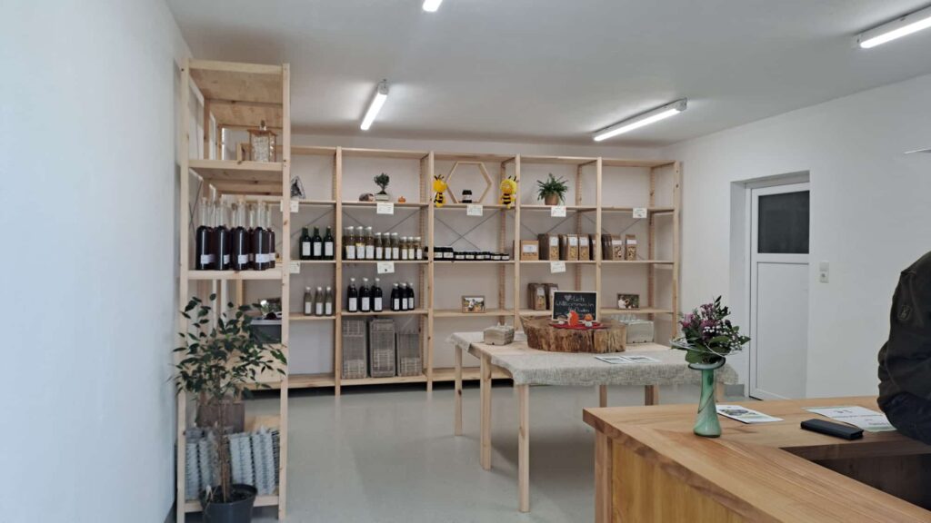In unserem Hofladen konnten unsere Gäste entdecken, was unser Hof zu bieten hat: Frische Eier, hausgemachte Nudeln, Honig aus eigener Imkerei, Sirupe, Apfelsaft, Apfelringe und viele weitere Spezialitäten,